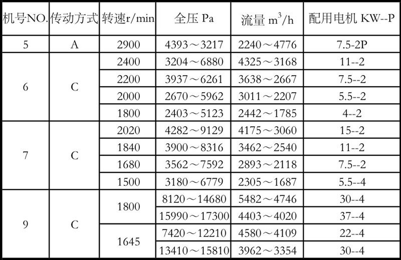 3, structural features: 8-09,9-12 fan by the impeller, chassis, air inlet, rotation group, seals, base and other components, for the 8-09 machine with local assembly mechanism, the other machine using the overall body The