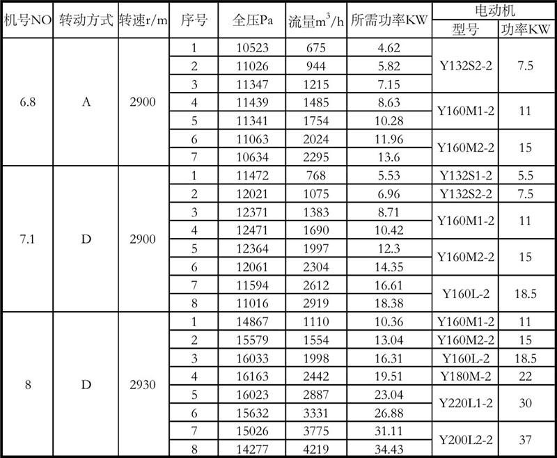 6-30 grain, powder delivery centrifugal fan performance parameters table