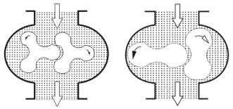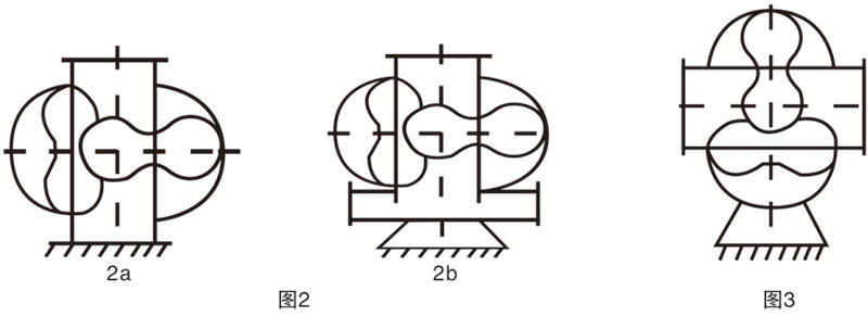 Horizontal - The two rotor centerlines of the blower are in the horizontal plane and the gas flows vertically (as shown in Figures 2a, 2b)